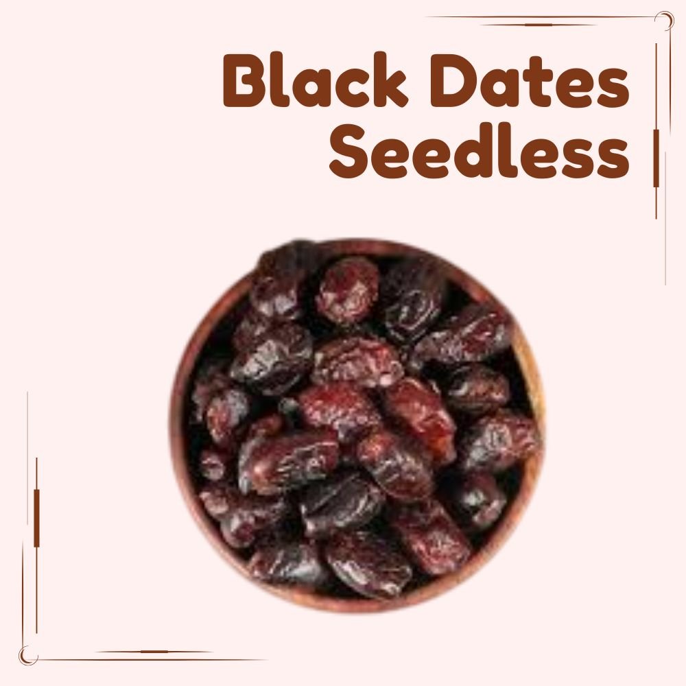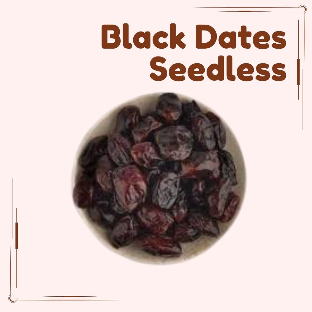 BLACK DATE SEEDLESS: Seedless black dates are rich and sweet, perfect for snacking or incorporating into desserts.