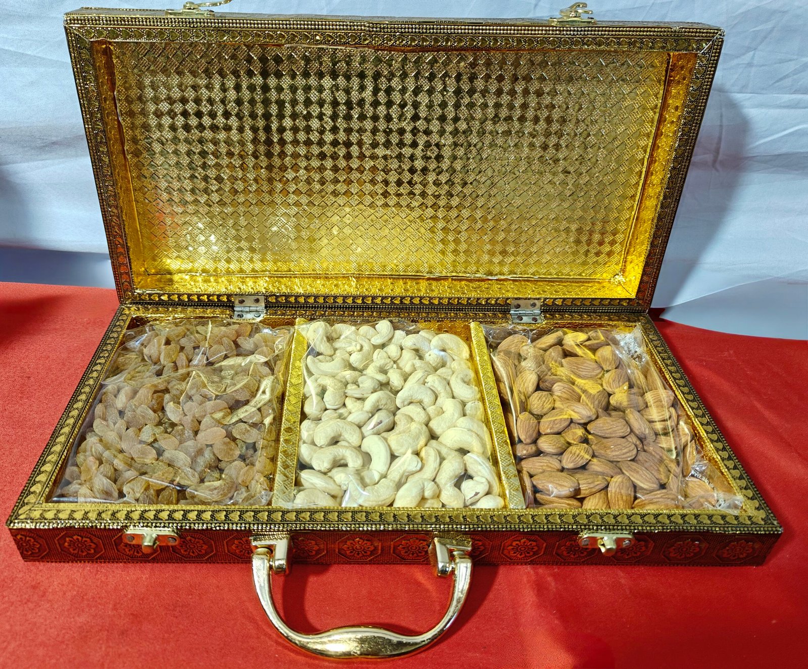 A beautiful metal box with consisting of 650gm of 3 various dry fruits