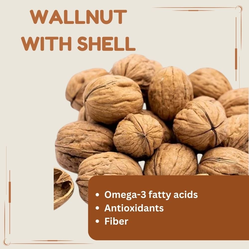 Walnut With Shell: Whole walnuts in their shells offer a traditional snacking experience. Cracking them open reveals the rich, creamy nut inside.