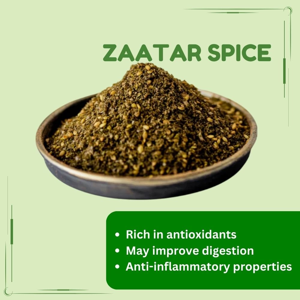 86. Zaatar Spice: A Middle Eastern blend of herbs and spices, zaatar is often used as a seasoning for meats, breads, and salads.